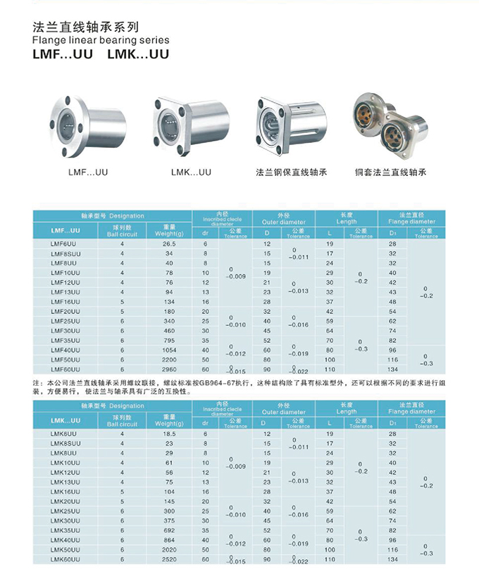 法蘭直線(xiàn)軸承系列LMF...UU LMK...UU